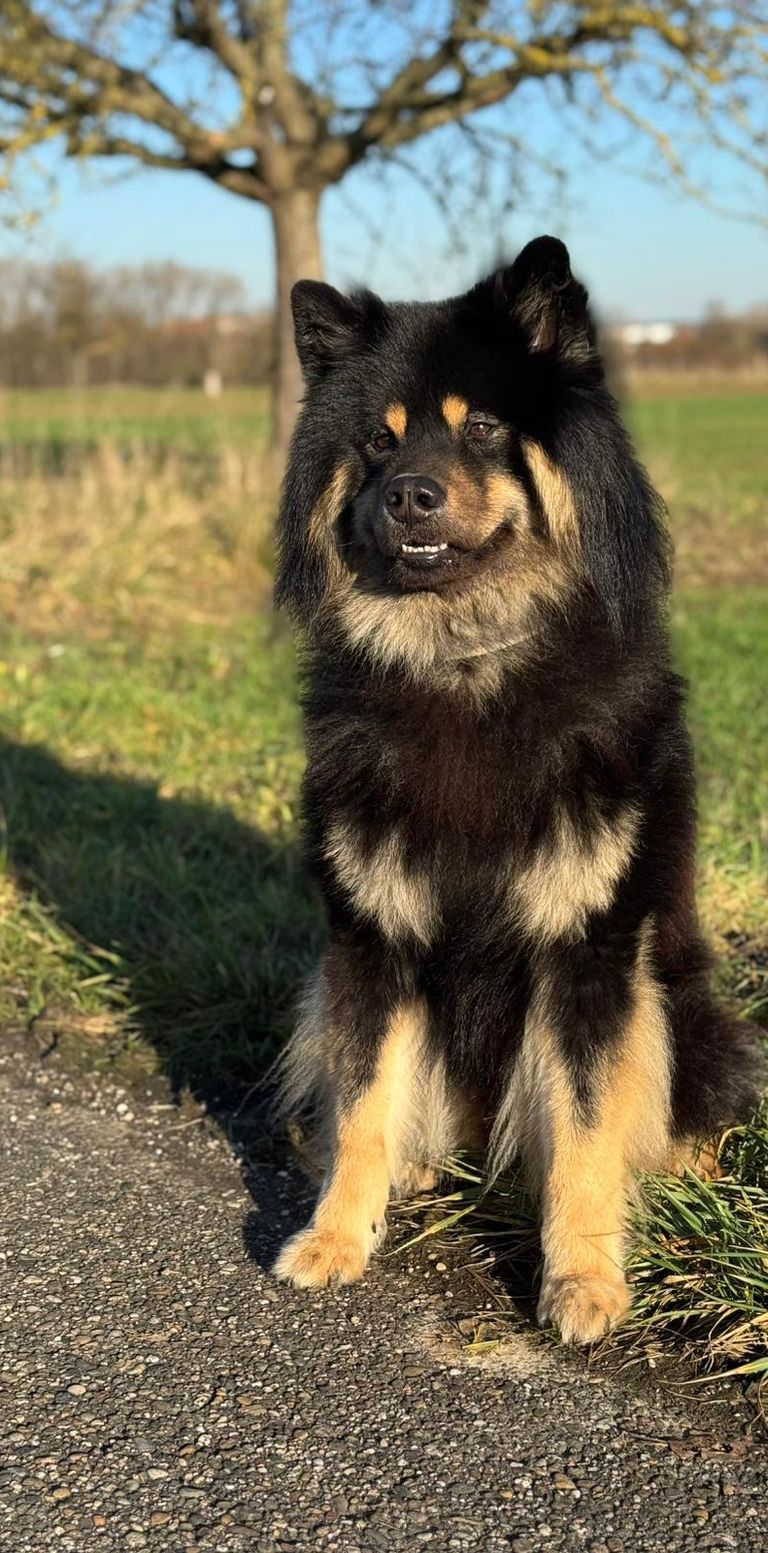 Beschreibung: schwarz mit Abzeichen, ruhiger Rüde, hoher Beschützer-Instinkt, etwas eigensinnig, liebevoller Familienhund.